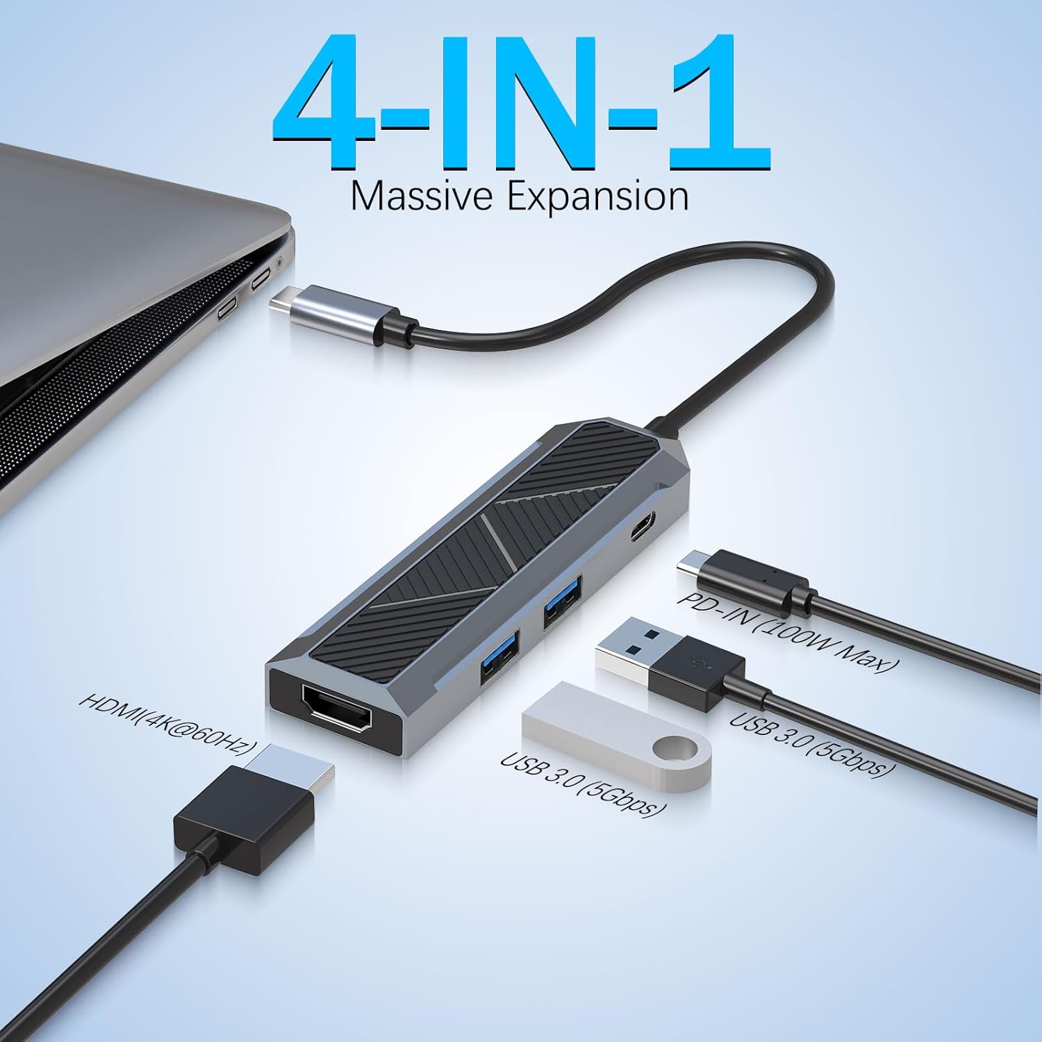 具有 4K 60Hz HDMI 分配器的 4 合 1 USB-C 集线器 – 适用于现代设备的紧凑连接