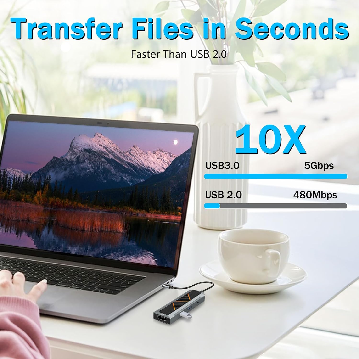 高速数据传输确保高效的文件共享和设备通信,使带有 4K 60Hz HDMI 分配器的 4 合 1 USB-C 集线器适用于办公室和创意工作环境。