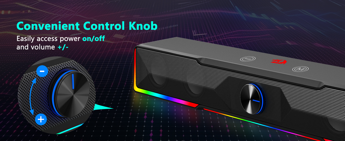 黑色 GS516 蓝牙/USB 有线连接 Soundbar 音量旋钮电脑扬声器的一个主要功能是其直观的音量旋钮控制。该物理拨盘允许用户快速调整音频级别,而无需导航软件设置。