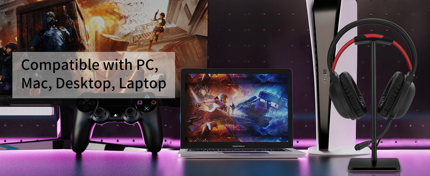 该耳机与多种设备兼容,包括游戏机、PC、笔记本电脑和支持标准音频连接的移动设备。