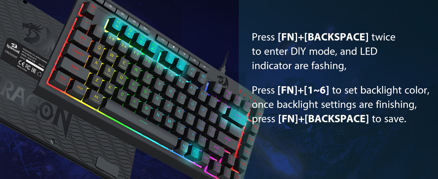 真正的 RGB 背光 -全动态 RGB 背光提供无数的照明可能性,仅限于您的想象力。该键盘配有 8 种预设照明模式和 6 个用于自定义模式的附加插槽。该板还允许亮度控制,范围从非常亮到完全关闭(如果不需要照明)。