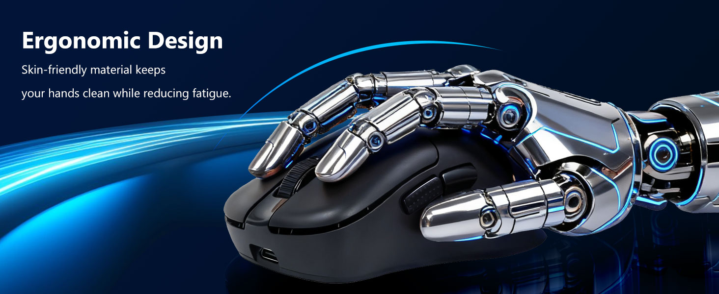 鼠标的形状支持自然的手部定位,适应不同的握持方式。这有助于减少长时间使用时的疲劳。