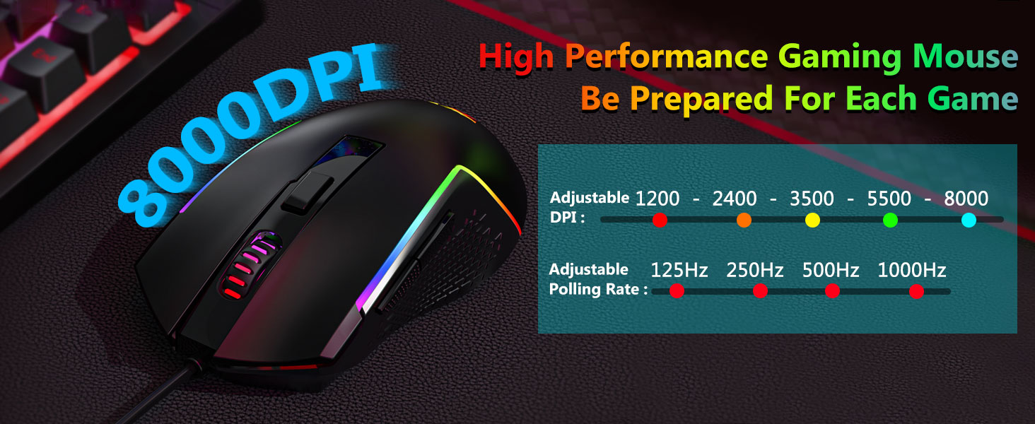 附带的鼠标配备光学传感器,支持稳定的跟踪和平滑的光标移动。可调节的 DPI 设置允许用户将灵敏度与不同的任务相匹配。