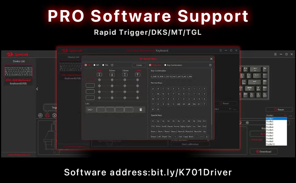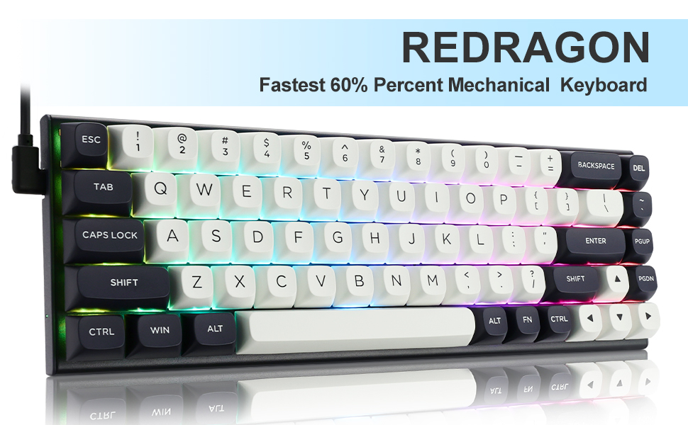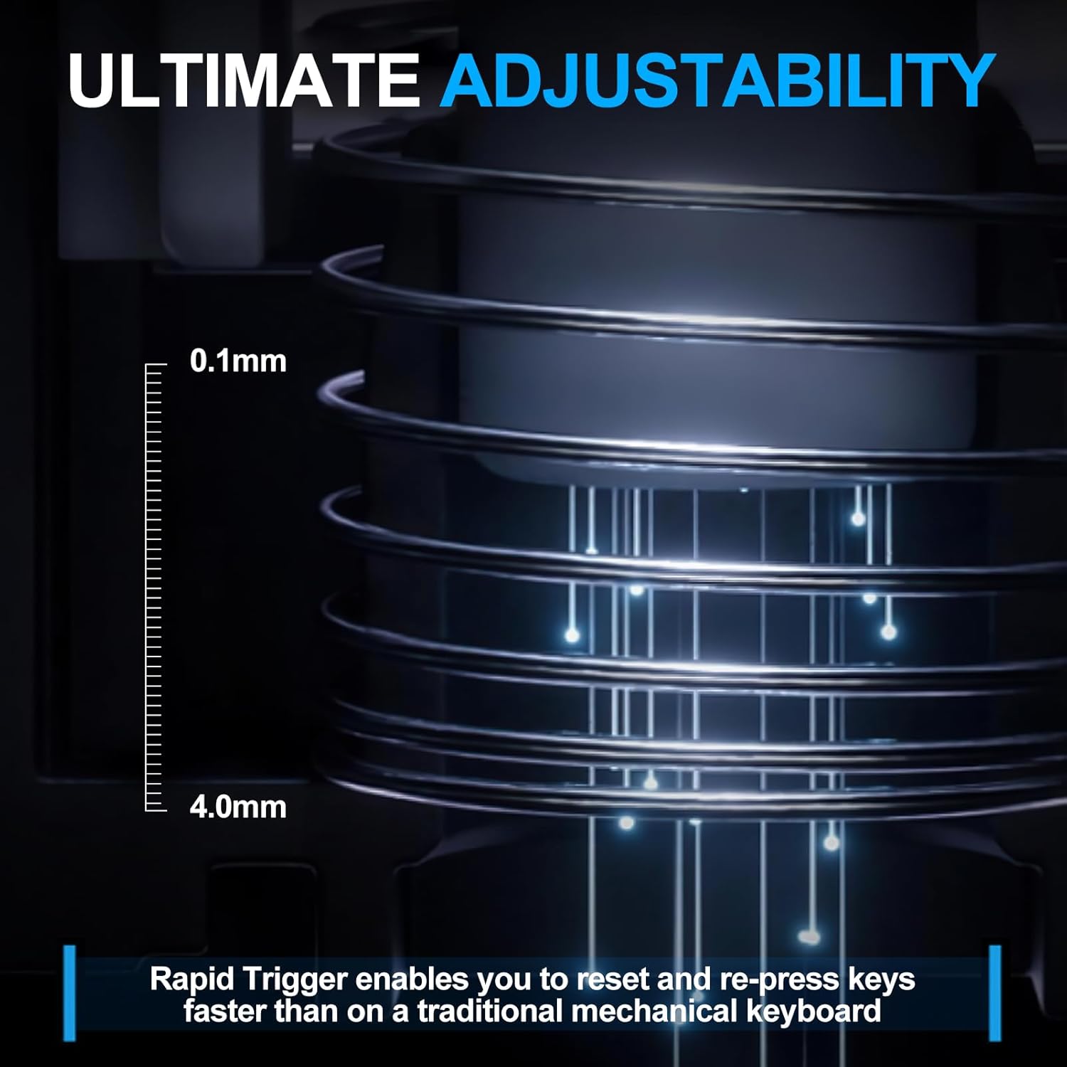 白色/蓝黑色 K701 快速触发 60% 有线磁力开关机械游戏键盘提供响应灵敏的打字体验,可适应不同的用户偏好。可调节的驱动点允许用户根据自己的需要微调灵敏度。