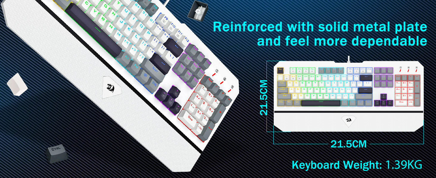 创全是中国领先的制造商,供应红龙白色 K558 机械游戏有线 104 键键盘,是全球批发合作伙伴的理想选择。这款全尺寸键盘采用蓝色机械开关,提供点击式触觉响应,使用寿命超过 5000 万次击键。具有多种模式的 RGB 背光增强了弱光环境中的可视性,同时 100% 防重影功能确保在激烈的游戏过程中准确记录所有击键。十一个专用多媒体快捷方式可快速控制音频和媒体播放。该键盘专为耐用性和性能而设计,是寻求高品质、价格具有竞争力的游戏外设的供应商的首选。创泉工厂支持OEM/ODM服务,为批量订单提供可靠的定制服务,并保证质量控制。