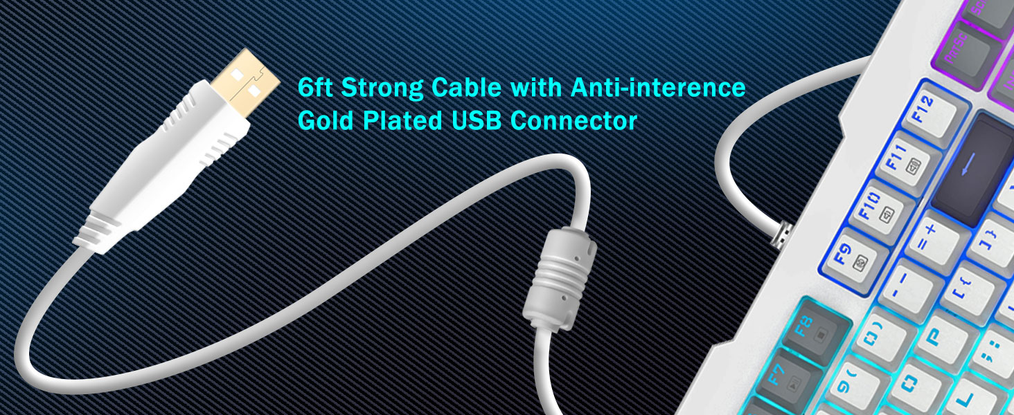 【高端104键全尺寸键盘】键盘面板采用顶级金属合金和 ABS 材料制成,极其坚固,耐刮擦。镀金 USB 连接器可确保稳定、可靠的连接,实现终极游戏性能。这款键盘重 1.39 公斤,握在手里就像一个坚固的坦克,在使用过程中提供了无与伦比的稳定性。