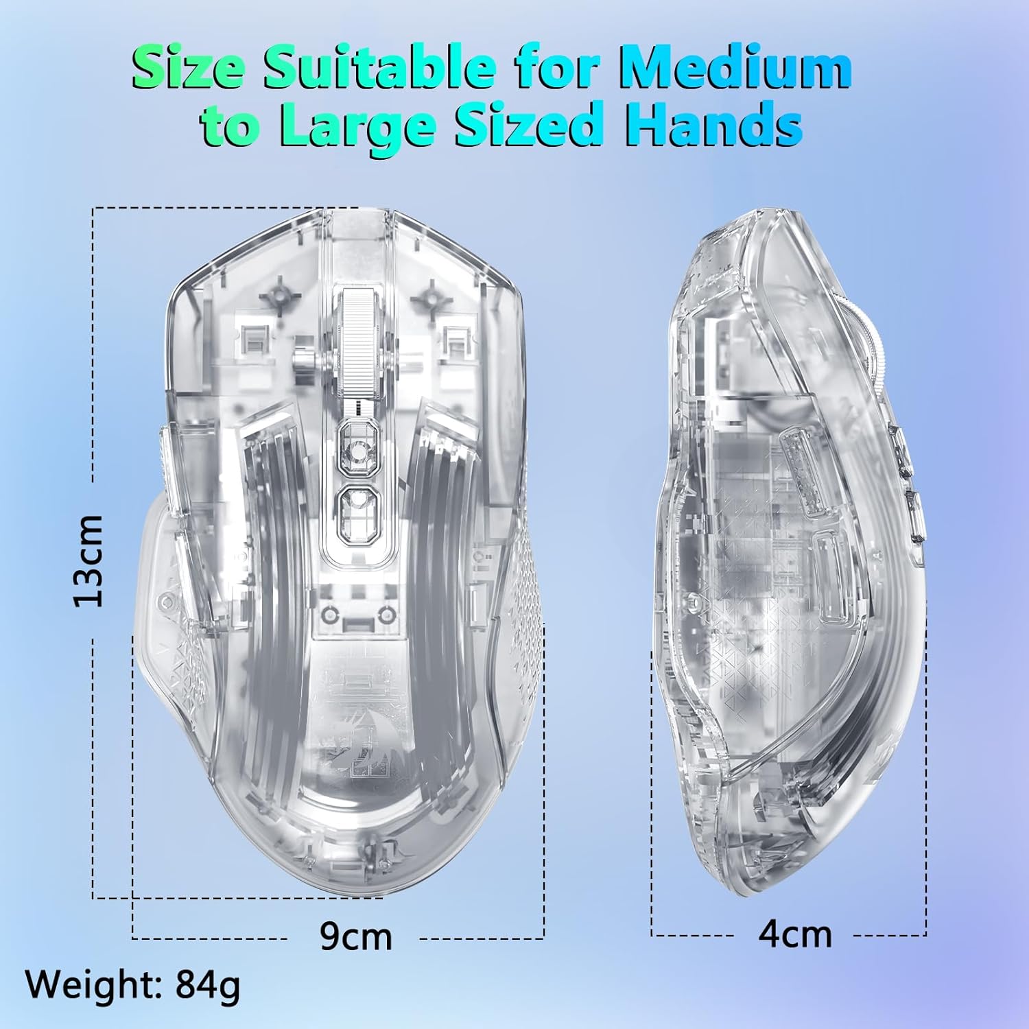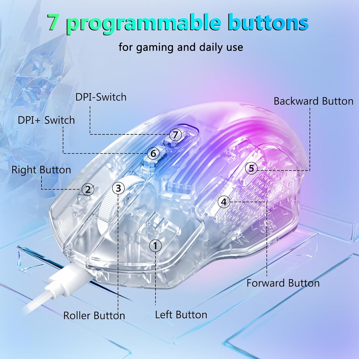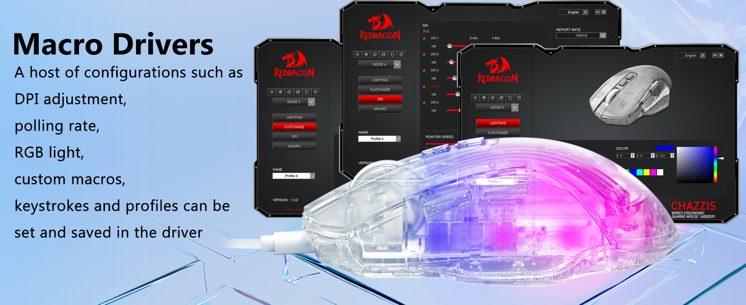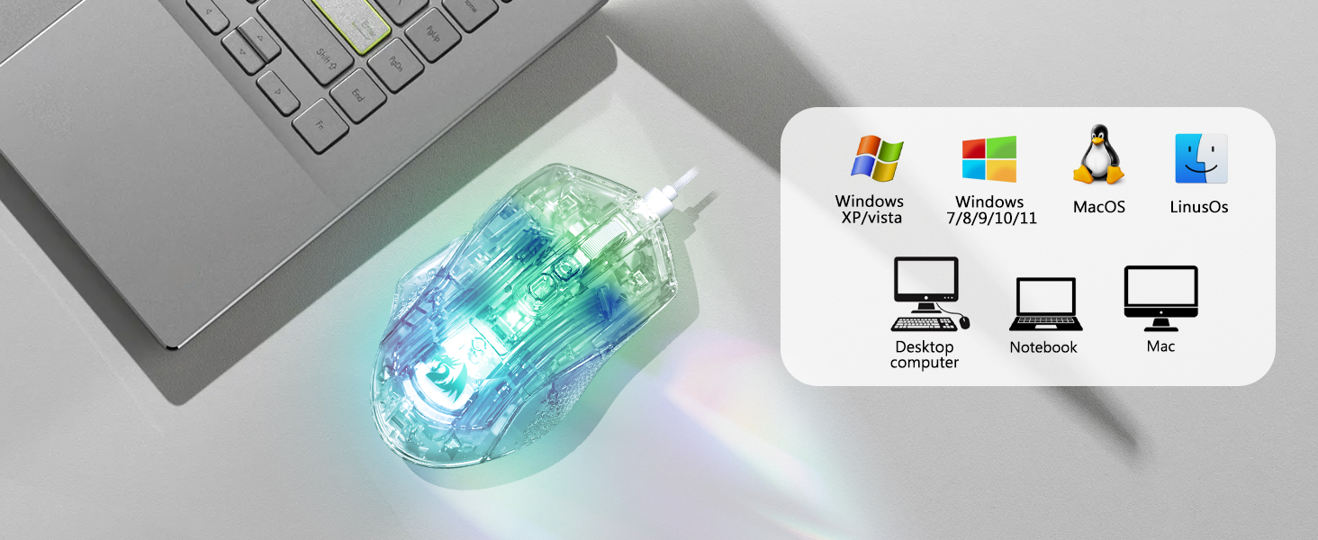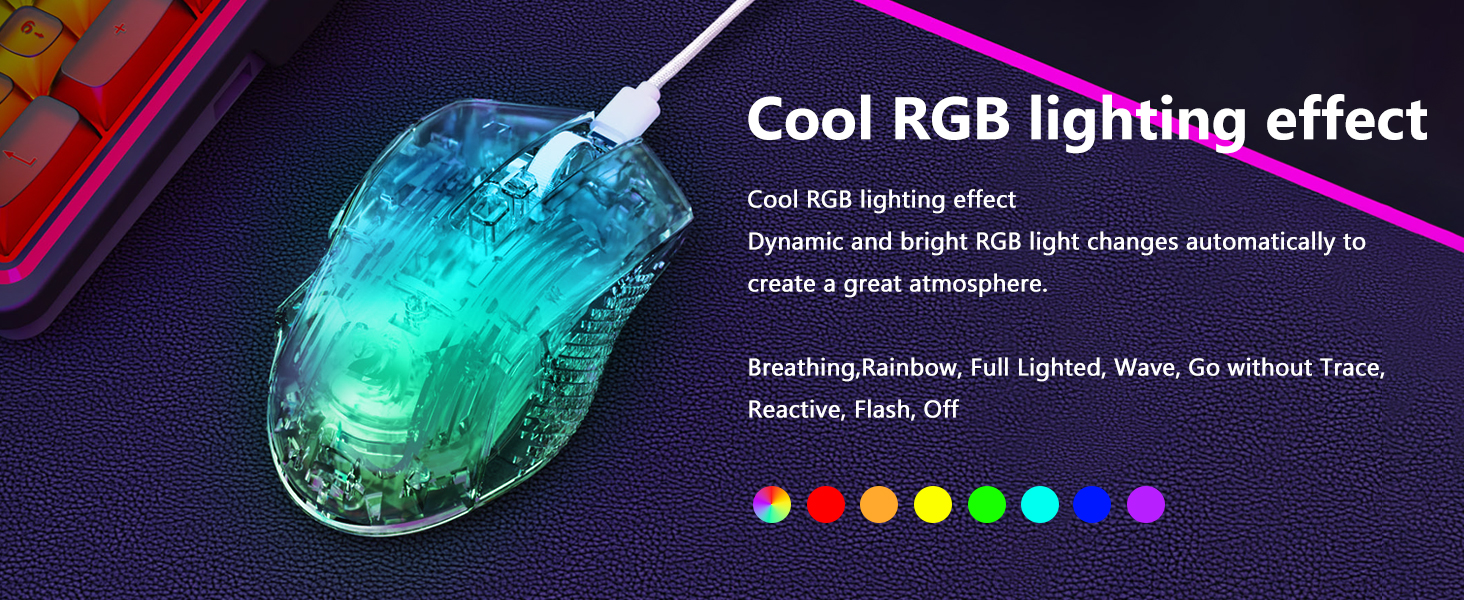 该鼠标包括八种 RGB 灯光效果,可增强视觉吸引力而不影响性能。用户可以根据自己的设置或个人喜好在照明模式之间切换。