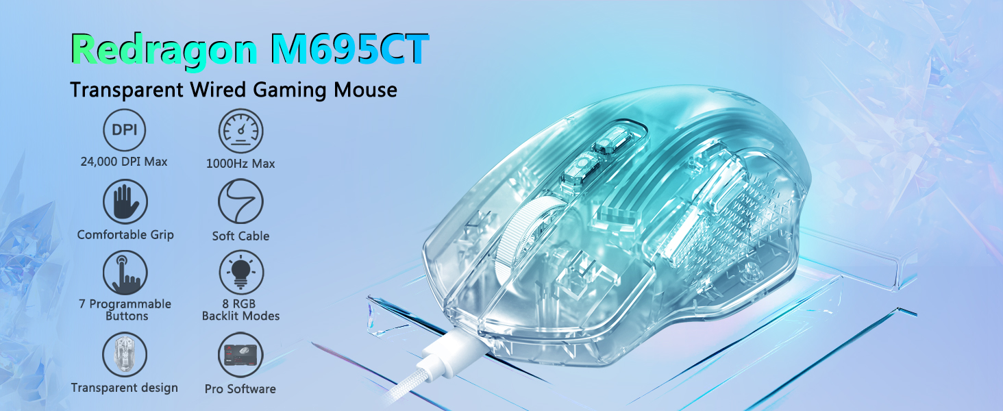 白色 M695CT 24,000 DPI 8 RGB LED 背光模式有线游戏鼠标具有可靠的有线连接和实用的功能集,是在现代计算环境中寻求一致控制和高效性能的用户的可靠选择。
